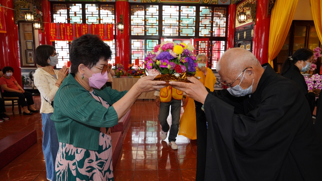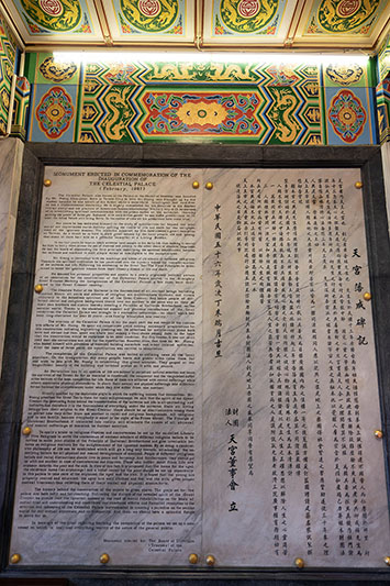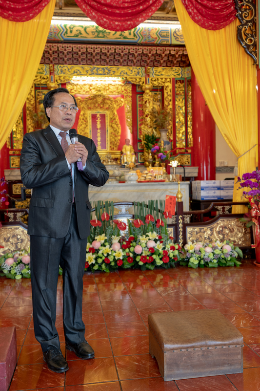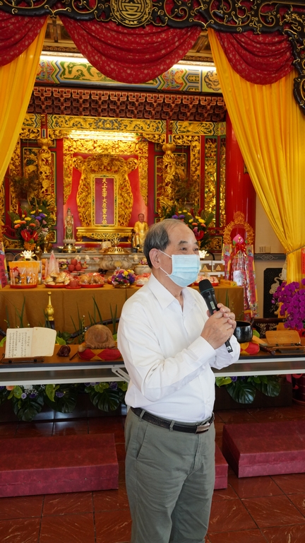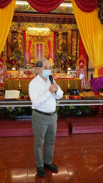 顧本宮之興建,先生摩頂放踵,擘劃經營,不舍晝夜,計時六載,以真善美為目標,廣採國內外之佳構。一年之後,蒐羅方備,爰訂藍圖,聘請建築名家,試製模型,多方研討,始於民國五十二年鳩工應材奠基動工,自為監工採購材料,越三年方告落成,賓主無遠弗屆,莫不同讚莊嚴雄偉 !